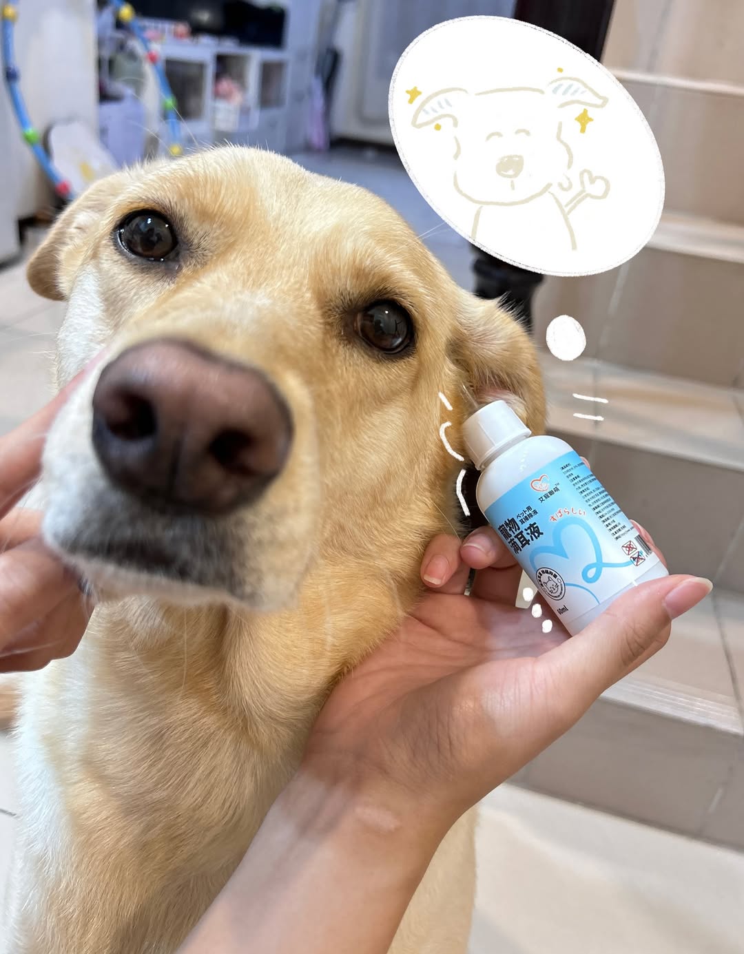 這瓶無香精、無酒精的洗耳液超溫和,滴進去按摩一下,搖搖頭就乾淨啦~