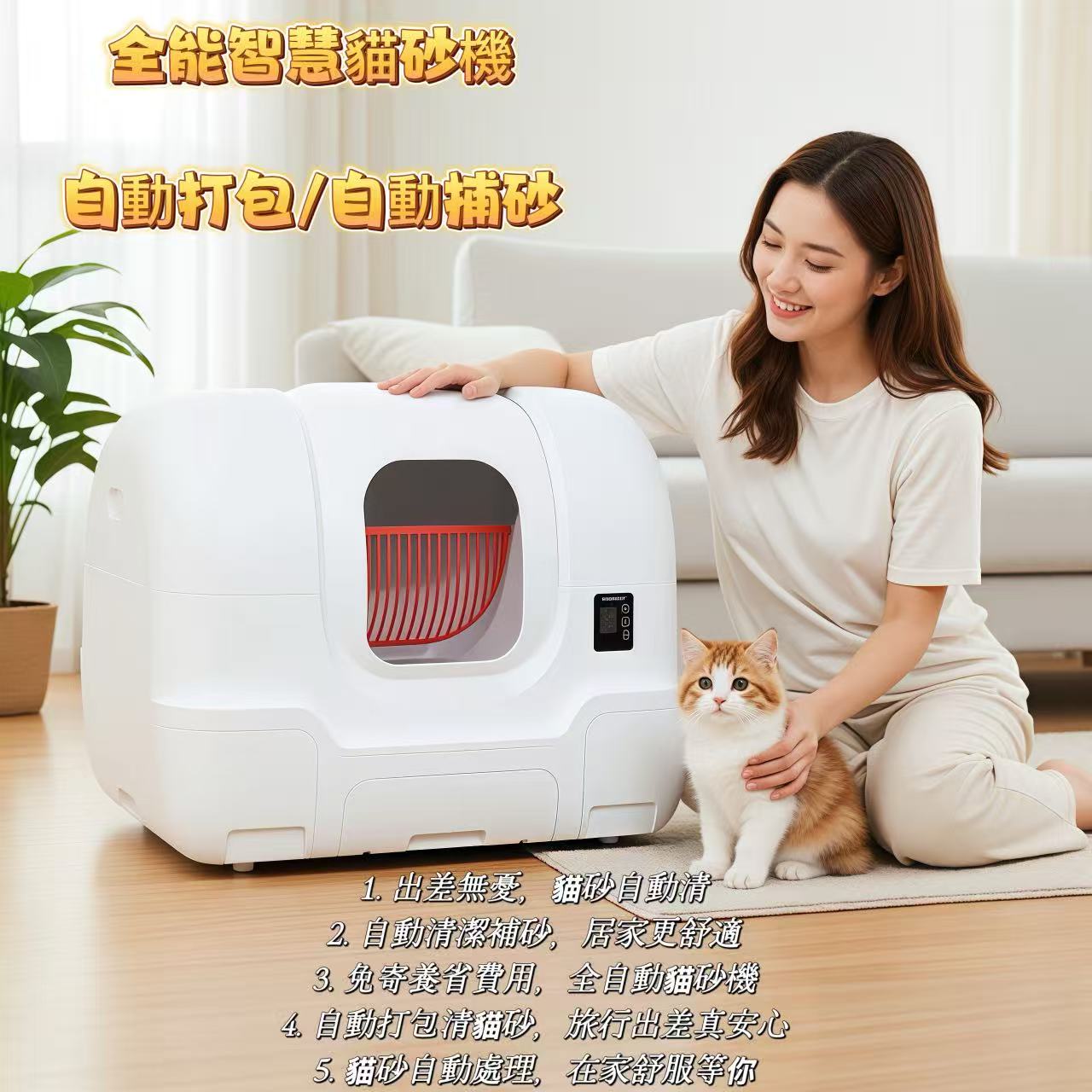 為你即時清理、自動打包並自動檢測補充乾淨貓砂,讓毛孩始終享受潔淨空間