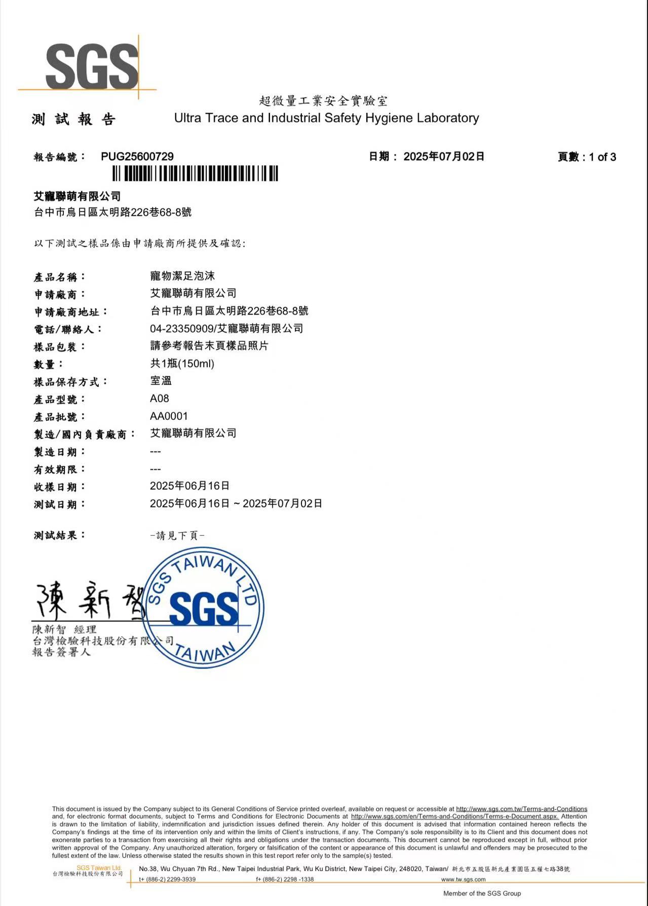 SGS認證-寵物潔足泡沫
