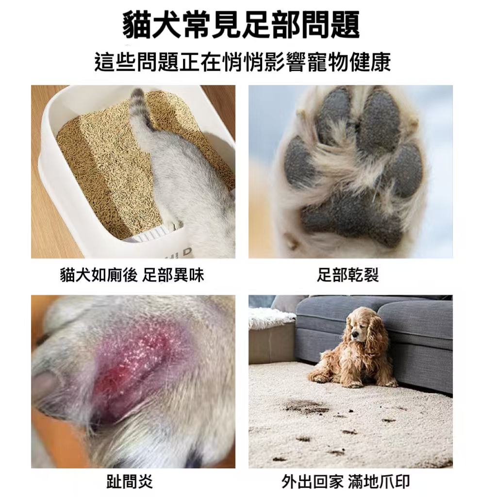 - 具有抗菌效果,減少寵物足部細菌滋生。