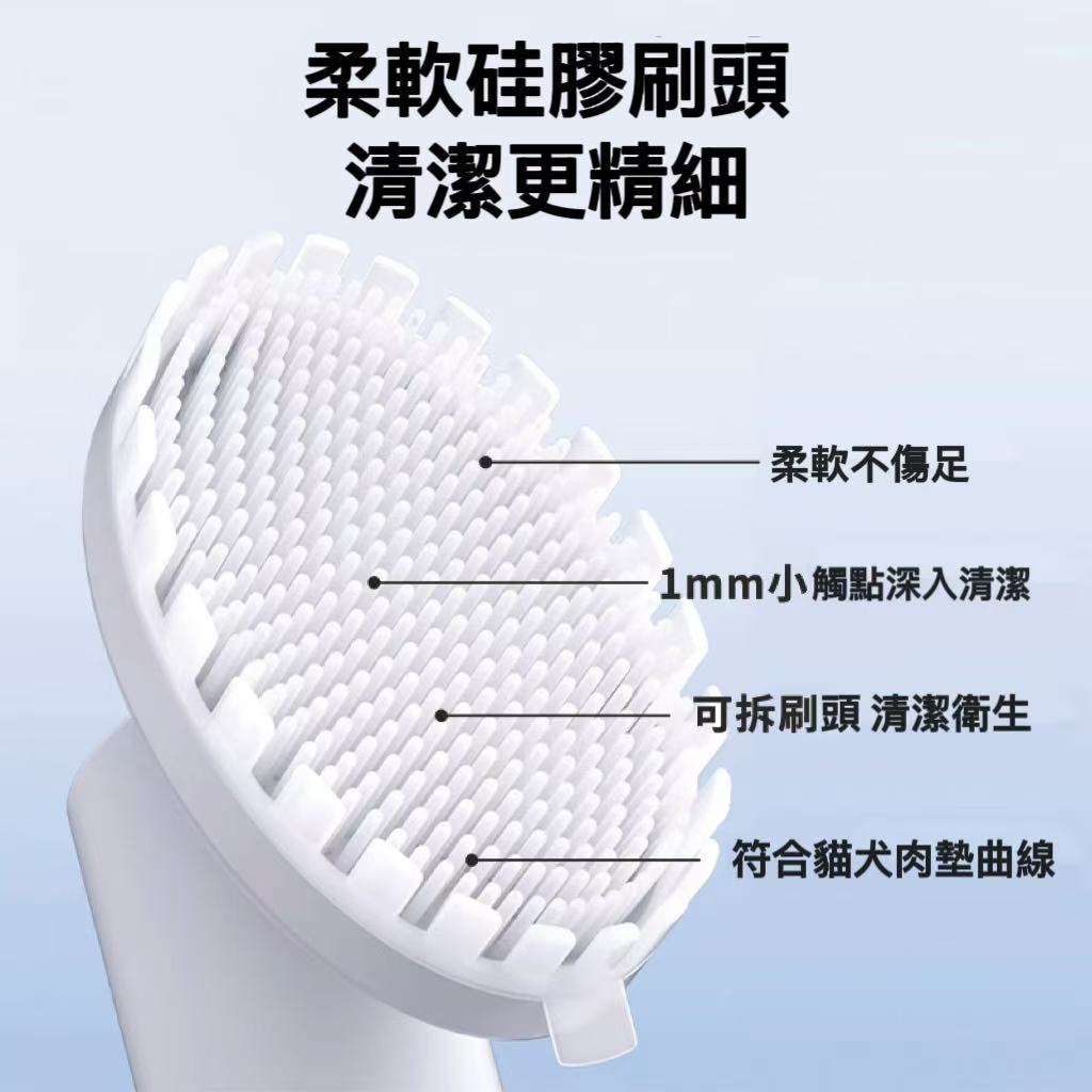 - 自帶硅膠刷頭,方便使用,深入清潔寵物腳趾間的污垢。